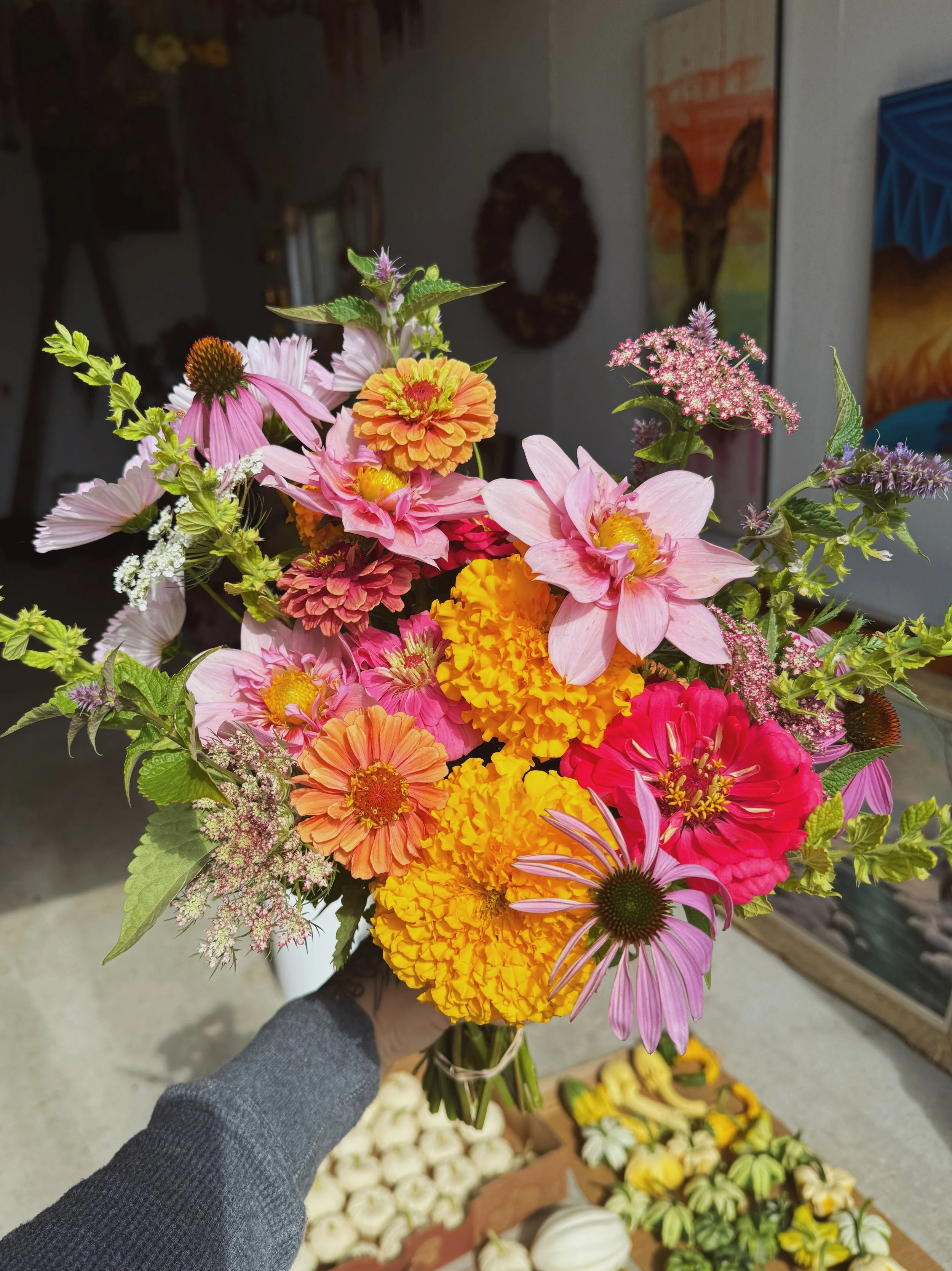 Our Solstice to Harvest Offering invites you to embrace the enchantment of biweekly bouquets, lovingly crafted from farm-grown flowers and foliage. Each arrangement captures the essence of the seasons and the gentle shifts in nature from Summer Solstice to Harvest time.